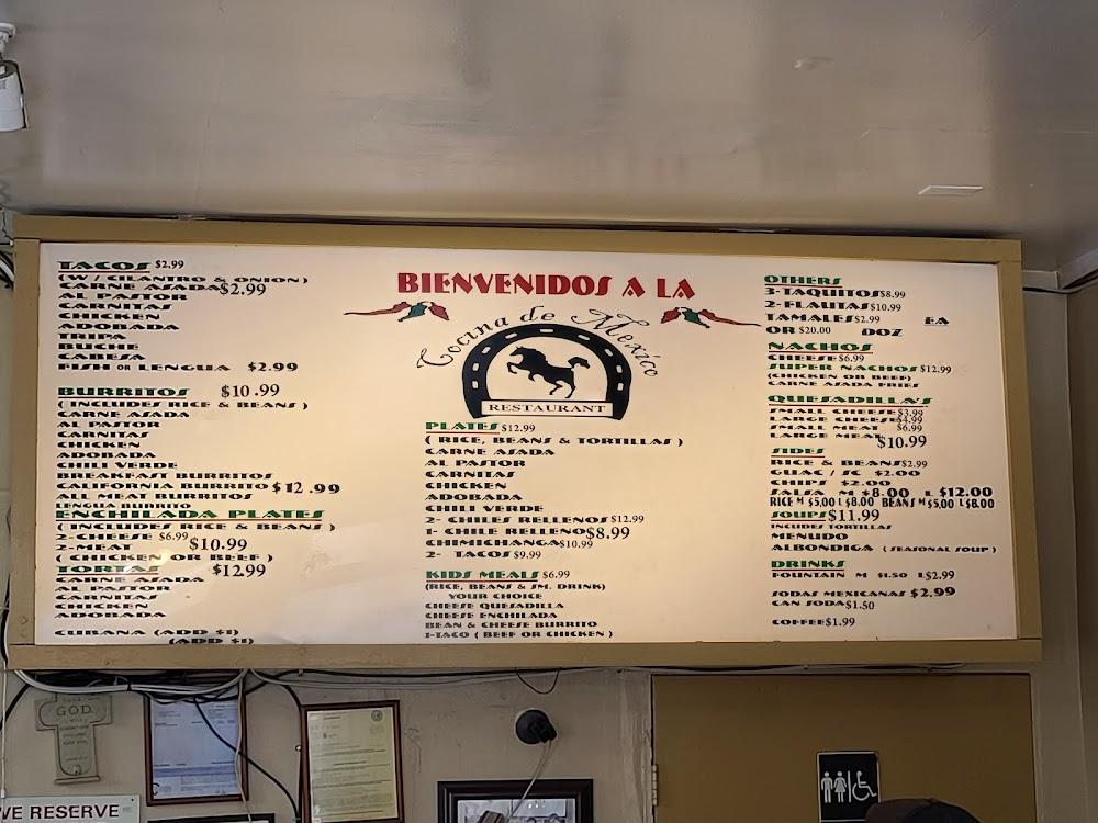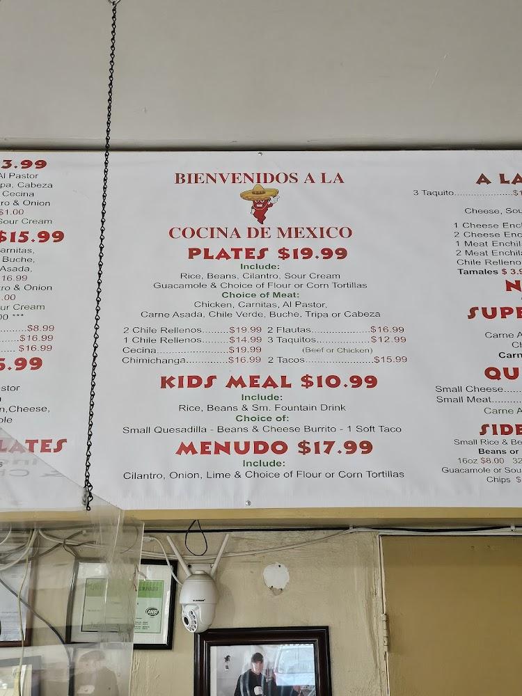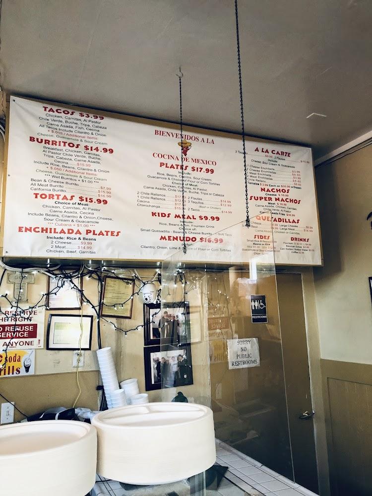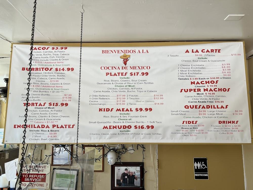 Cocina De Mexico's menu features a range of classic Mexican dishes. Highlights include burritos, enchiladas, and tacos, all made with fresh ingredients. Sides like guacamole and chips are perfect for sharing. The drink menu offers Mexican sodas and coffee, ideal for all ages.